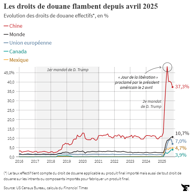 Les droits de douane flambent depuis avril 2025