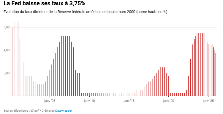 La Fed baisse ses taux à 3,75%
