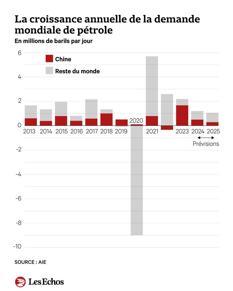 La croissance annuelle de la demande mondiale de pétrole
