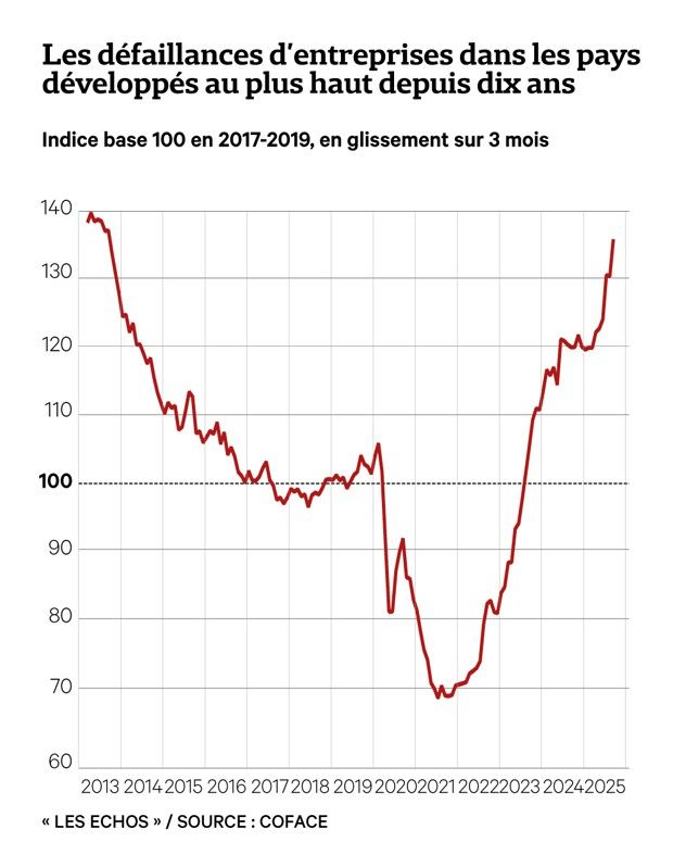 Les défaillances d’entreprises dans les pays développés au plus haut depuis dix ans