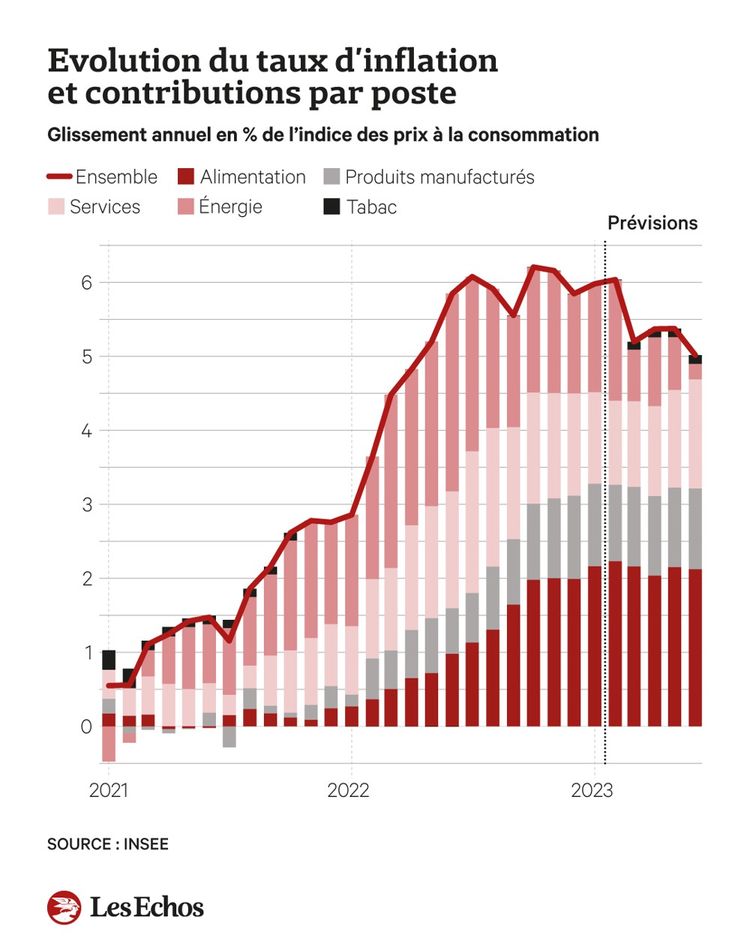 Evolution du taux d’inflation et contributions par poste